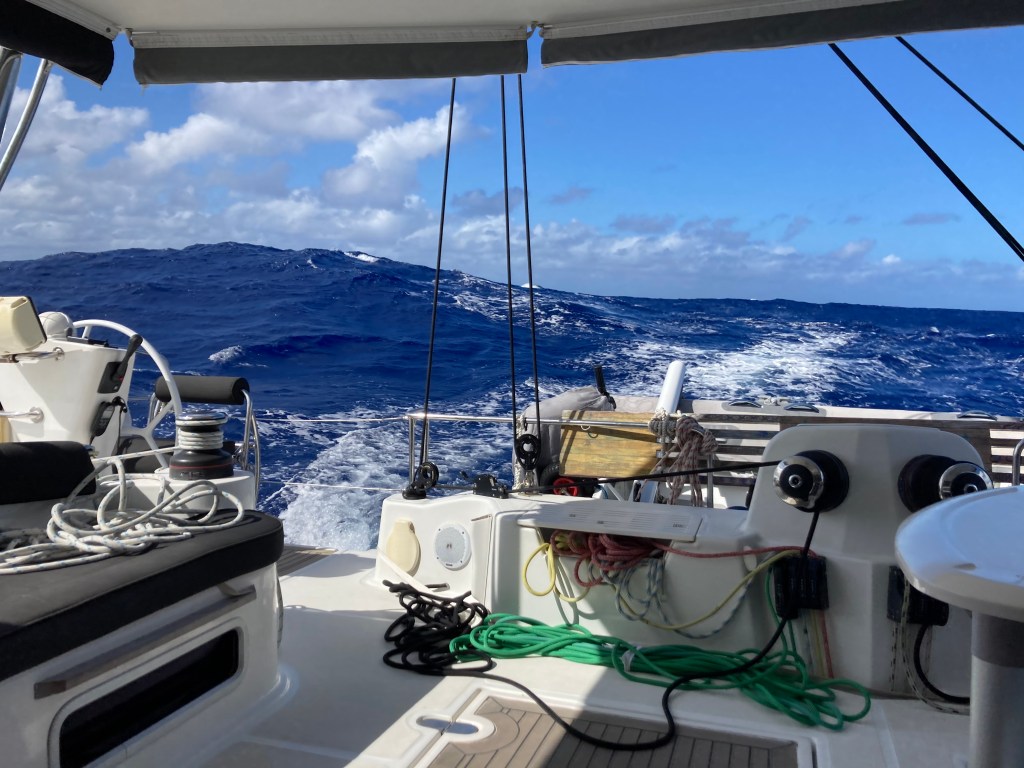 At first we headed slightly North to find the winds and then it was Westward Ho! Unfortunately not All Points West, as the Cook Islands and Tonga were still closed because of Covid, so it was going to be a non-stop passage to Fiji of about 1,700 miles. Roughly two weeks at sea, and our first long passage for just over two years. So we weren’t even sure if we could remember how to do it.