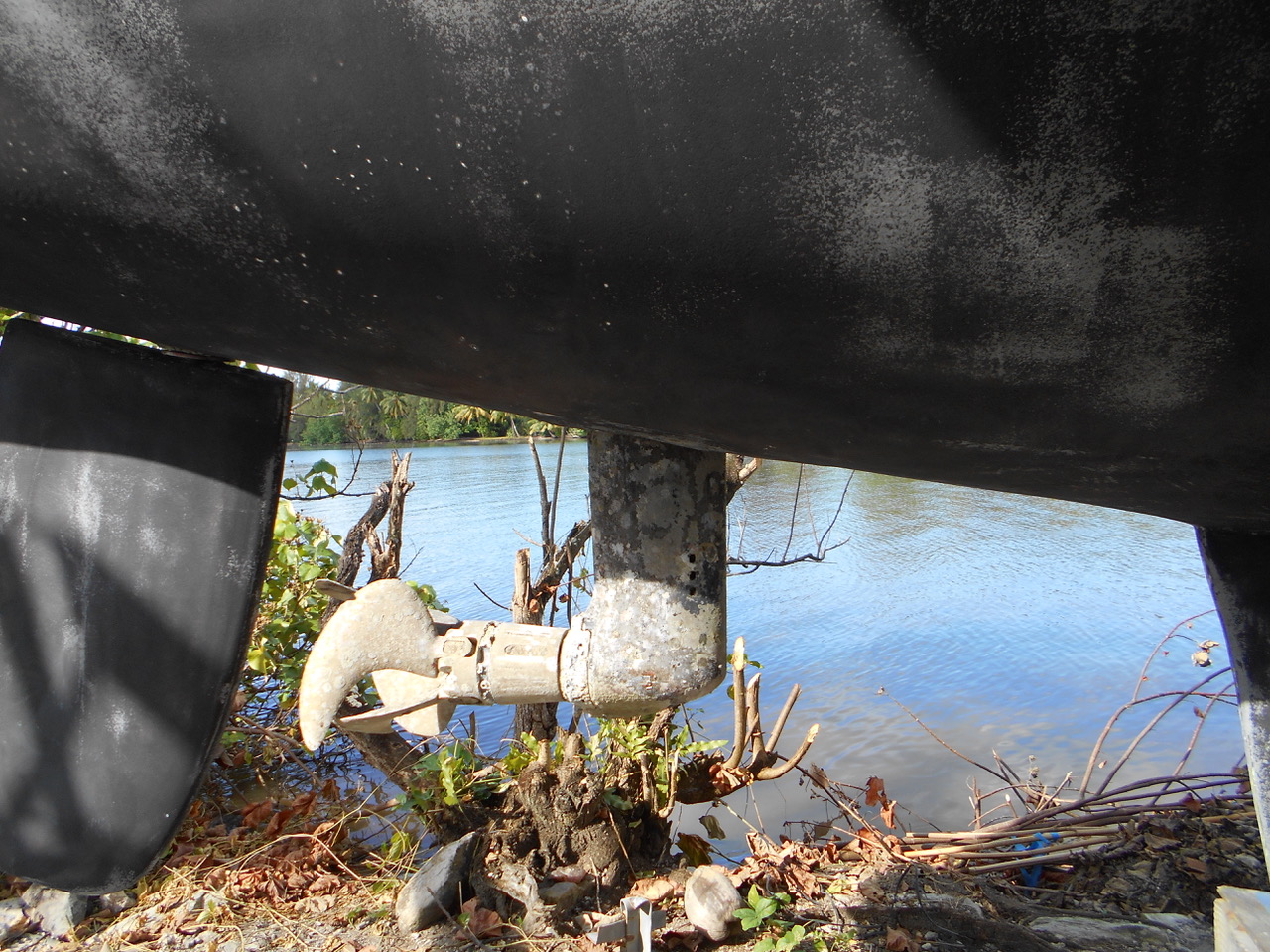 I was given a drone by a very generous friend (you know who you are) but we haven’t dared to use it yet. The problem is that it this feature that means it always lands in the same place as it took off, which is a bit tricky when you’re on a boat that keeps on moving. So this is the best drone photo we can manage right now.