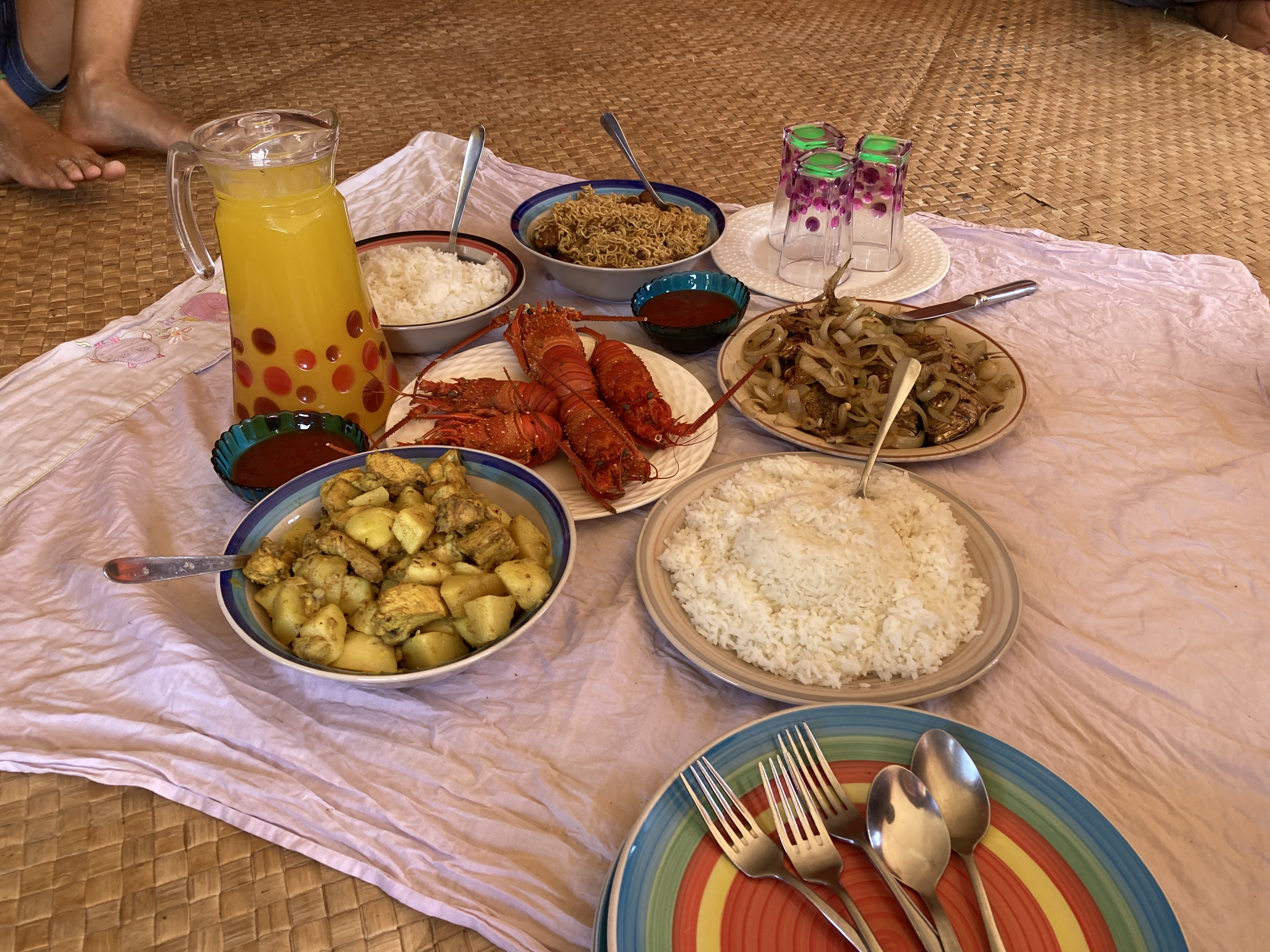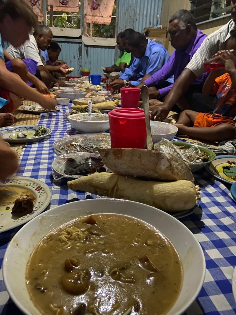 The feast was mostly fish caught that day or freshly harvested taro and coconut,