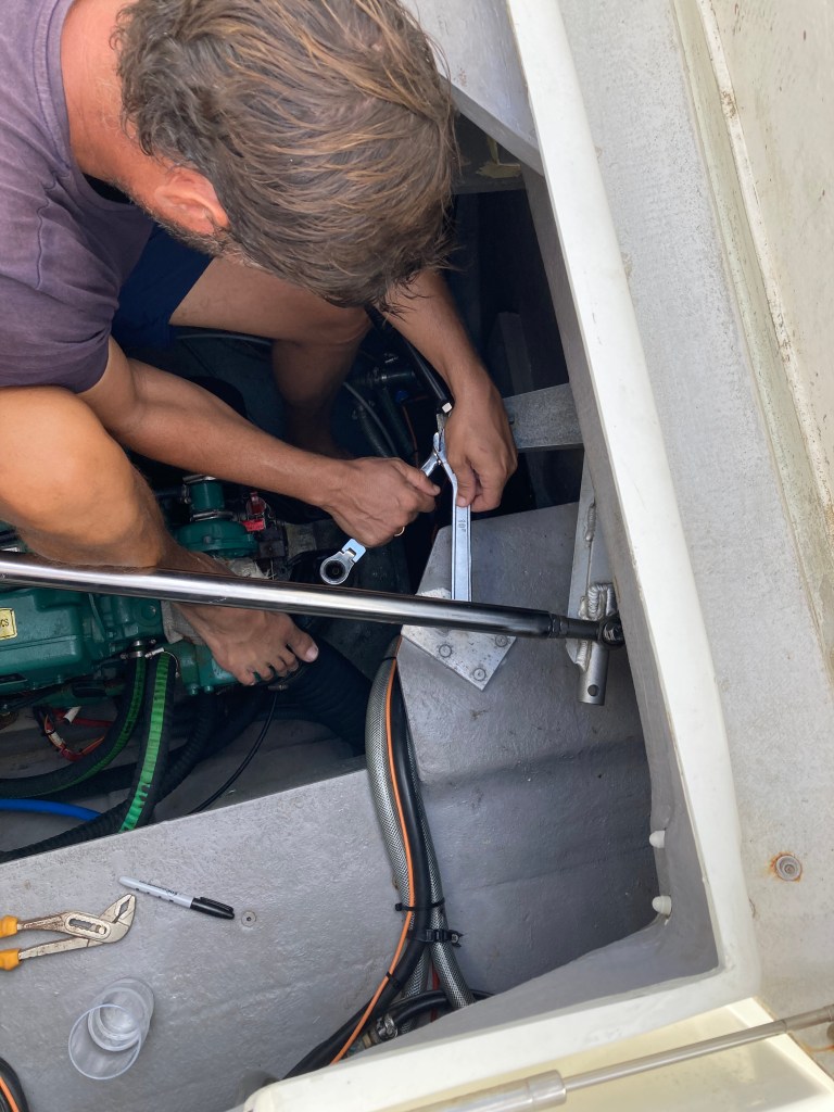 Our steering was starting to give us problems, but once again Troels and Karsten on Atreju came to the rescue and got it all working again.