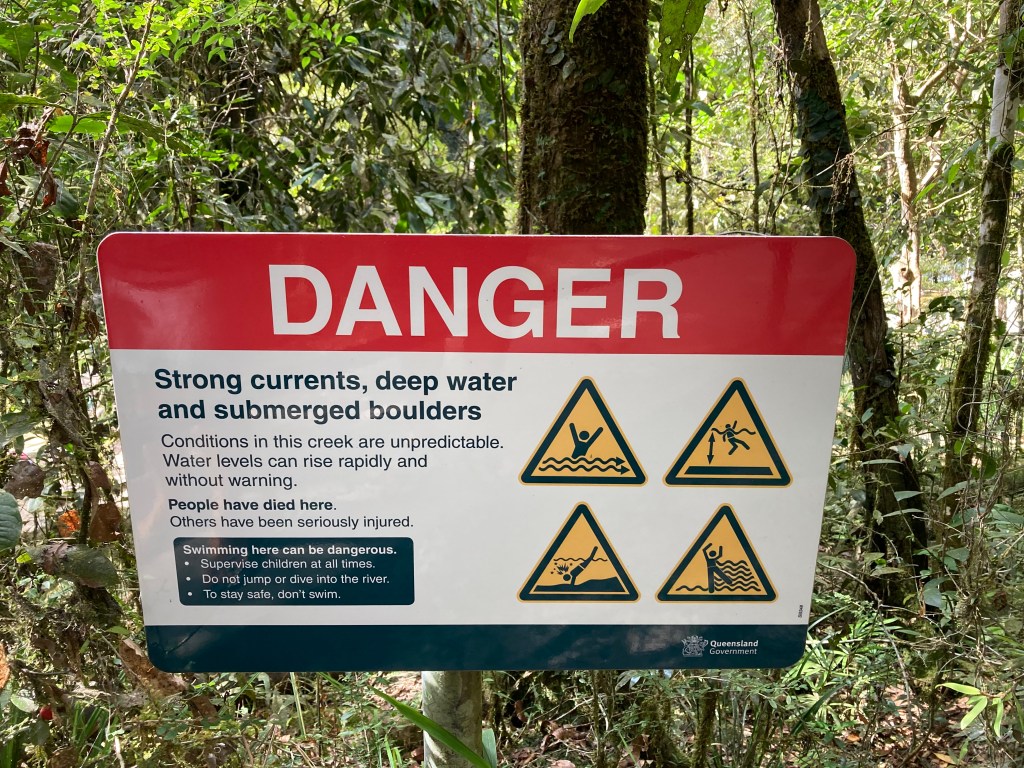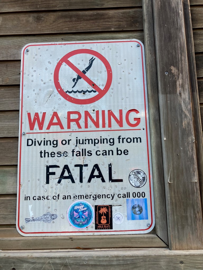 Australia can be a quite dangerous place. We’re often surprised how anyone actually survives at all. We all know about the sharks, the crocs, the funnel webs and the snakes. But there’s plenty of other things to trap the unwary, and in case you aren’t nervous enough already, there’s plenty of signs to remind you.