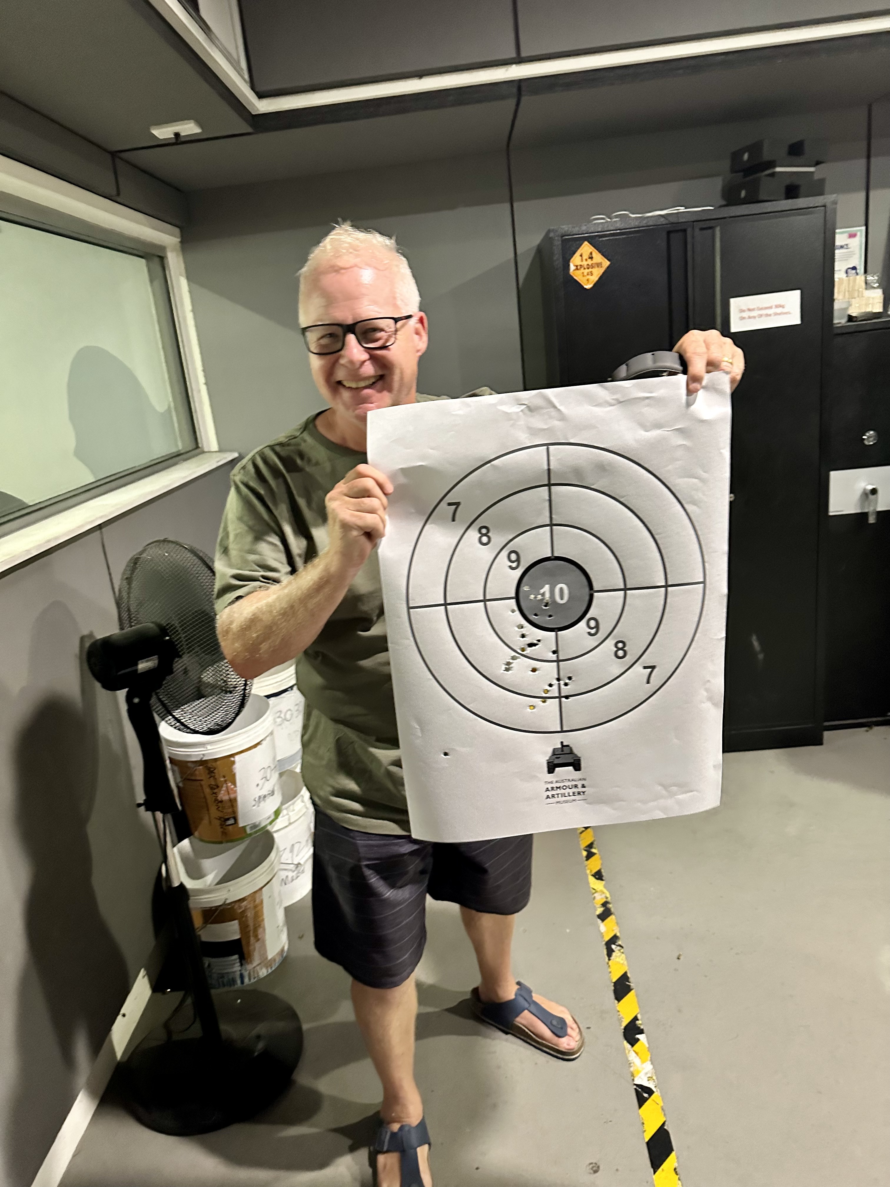 With so many animals that can kill you it seemed sensible to learn how to protect ourselves. So Ju went down to the rifle range.